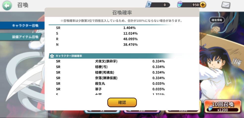 悲報 犬夜叉のソシャゲの殺生丸の出る確率ww ねいろ速報さん